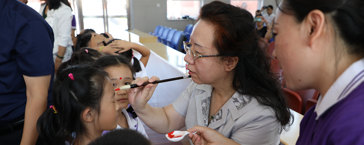 孟校长为新生点砂启智