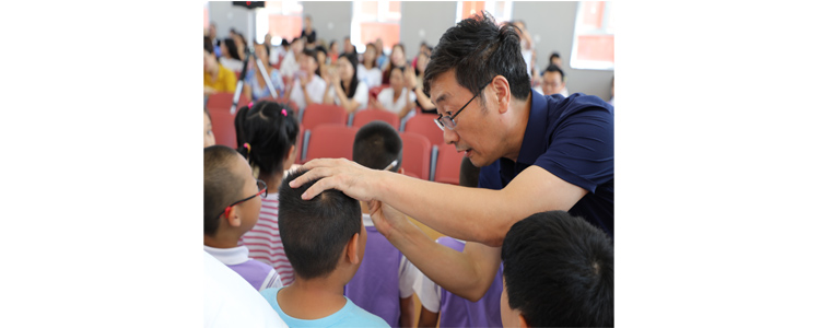 杜校长为新生点砂启智