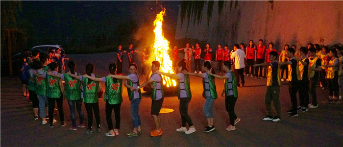 篝火燃起来,兔子舞跳起来,谜语猜起来,成语接起来,脑筋急转弯,转了好几圈。输了怎么罚?即兴相声说起来,笑倒一大片……
