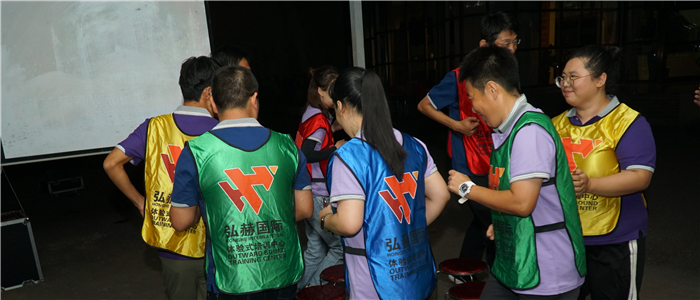 轻松有趣的热身游戏后,教练随机将大家分成四个战队。欢声笑语中,各队的“将军”“军师”“炮灰”和“将军夫人”新鲜“出炉”。“黑龙队”“海草队”“战鹰队”“火蓝刀锋队”一一闪亮登场,“武林大会”开始了!
