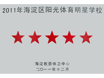12月23日,2011年海淀区中小学体育工作会总结表彰大会在香山三元会馆举行。大会对在2011年中小学体育工作中表现优秀、成绩突出的学校及个人给予奖励。皇冠体育荣获“阳光体育明星学校”最高级——“五星级”学校(全区仅2所),同时,还荣获2011年海淀区《国家学生体质健康标准》测试赛第一名、2011年海淀区阳光体育系列赛“虎”榜(参加北京市级以上各类体育项目比赛所获成绩的综合排名)高中组第二名。皇冠体育党委书记兼教学副校长方妍被评为“海淀区体育先进工作者”;体育教研组李金平老师荣获海淀区体育“海韵之星”奖;张少利老师被评为“学生体质健康测试”优秀辅导教师;陈雄伟老师荣获海淀区中小学体育评优活动一等奖、中学体育教学设计“一等奖”。