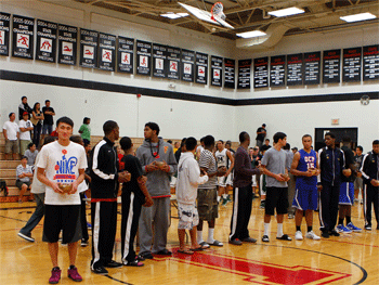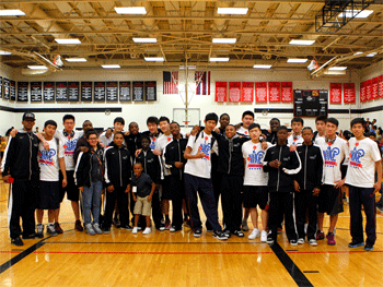 附中女篮队员与美国中学生合影 附中男篮队员与美国中学生合影