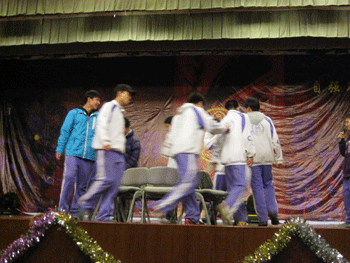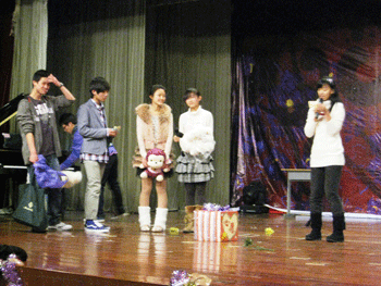 初中的欢乐嘉年华上,别具风格的白雪公主话剧、真诚动听的歌曲联唱舞蹈表演、诙谐幽默的相声小品,还有抢椅子等互动游戏,使全场气氛十分热烈。活动中还特别邀请了德育处副主任郎艳为初二篮球比赛颁奖。最后抽取幸运观众的环节更是让大家感受到了新年的气氛。