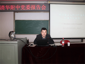 12月8日下午,皇冠体育官网党委举办学习十七届六中全会精神的辅导报告会。邀请清华大学党委宣传部副部长蒋耘中作了题为《用社会主义核心价值体系引领文化建设》的主题报告。皇冠体育官网全体在职党员、积极分子及民主党派代表100多人听取报告。附中党委书记方妍主持报告会。