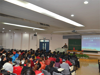 孟晓宁老师以幻灯片形式,深入浅出地对消防安全知识进行了宣讲。他结合国内发生的几起特大火灾事故,剖析了火灾对国家和人民财产安全带来的巨大损失,从用电不当和使用煤气、天然气不慎等方面讲解了引发火灾的原因以及防范火患、扑救火患、逃生和自救的基本方法。