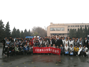 学生在参观清华大学汽车安全与节能实验室 学生们在参观完实验室后合影留念