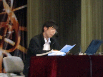 李劲松老师在演讲 学生代表向李劲松老师献花表示感谢