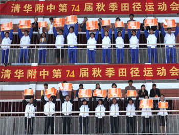 开幕式由附中教务处主任赵鸿雁主持。清华大学体育部主任陈伟强代表大学对附中的体育工作给予充分肯定,并预祝运动会取得圆满成功。副校长杜毓贞致开幕词,她鼓励同学们要团结协作,顽强拼搏,文明观赛,展现当代中学生的精神风范!运动员代表高1109班史雨薇同学也在开幕式上发言,号召同学们要在赛场上尽情展现自己的青春与活力以及奋发向上的精神风貌,在“更快、更高、更强”的道路上奋勇争先,赛出风格,赛出水平。最后,场上全体运动员的集体广播操表演,整齐划一,场面壮观,赢得看台上师生的热烈鼓掌。