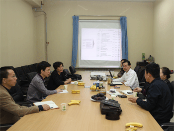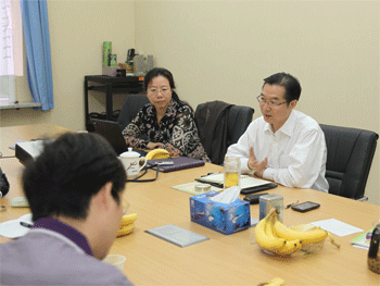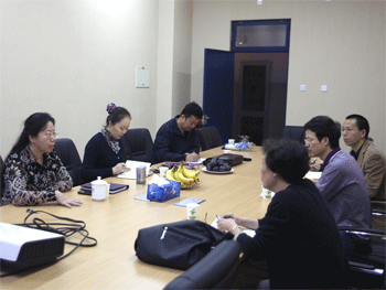 杜毓贞副校长(左1)介绍课题推进情况 王殿军校长(右1)发言