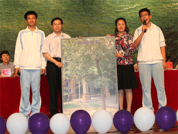毕业生代表向学校赠送纪念树 王殿军校长为各班学生代表颁发毕业证书