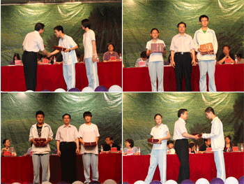 出席毕业典礼的领导为获奖班级和学生颁奖 教师代表(左)和毕业生代表分别发言