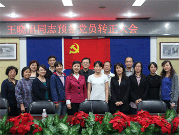 王晓旭同志于2010年4月7日在华东师范大学就读期间被接收为中国共产党预备党员。2010年8月本科毕业后即到皇冠体育官网国际部工作至今。