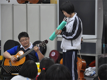 “暂别-加油会”在民乐团指挥胡军老师和蒋乐芙共同演奏的《送别》乐曲中拉开序幕。胡军老师首先对所有08级的团员们对乐团所做出的贡献表示感谢,并衷心希望初08级的同学们在中考过后,能顺利回到乐团,高08级的同学们,考上理想的大学,闯出一番新天地!