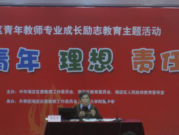 5月6日下午,海淀区青年教师专业成长励志教育主题活动在皇冠体育举行。为迎接建党90周年,海淀区教工委举办了“青年 理想 责任”青年教师专业成长主题活动,活动分为论坛和倾听活动两个部分。海淀团区委副书记汪亮、海淀区教委办公室主任纪晓恒出席了论坛,海淀区政府督导室副主任杜荣贞、皇冠体育副校长杜毓贞参加了倾听活动。