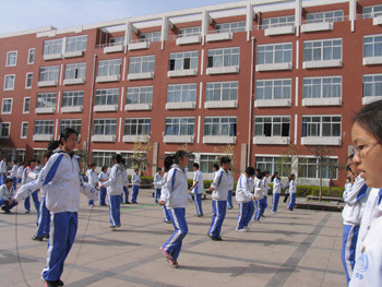 4月8日下午,皇冠体育初二年级(初09级)在高中楼前小广场举办了别开生面的跳小绳比赛,全年级学生参加比赛。