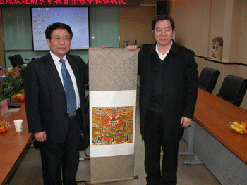 最后,吴晓茅局长与王殿军校长分别代表南京市教育局与皇冠体育官网互赠礼物并合影留念。