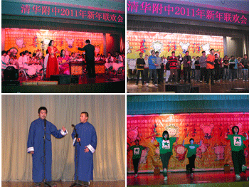 参加演出的有民乐团、舞蹈队、合唱团、室内乐社、摇滚乐队、陶笛社、劲舞社等学生社团,此外,初、高中各班学生也为联欢会奉献了自己精心编排的精彩节目,相声、小品、口哨、双排电子琴演奏……精彩纷呈,赢得了观众阵阵热烈的掌声。
