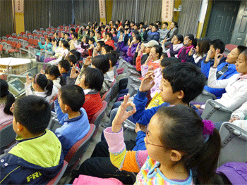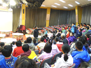 张彪老师在为中关村一小学生讲座 张彪老师与学生互动