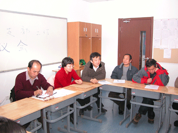 会议的最后一项是发放评议表,党员和积极分子等认真填写评议表,根据评分表标准各自评分。