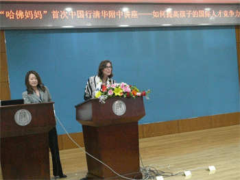 本次报告会的主题是“如何适应国际化人才需求”。主讲人“哈佛妈妈”Lisa拥有哈佛大学学士学位及斯坦福大学MBA学位。她的三个儿子目前都被美国哈佛大学的本科录取。Lisa从哈佛和斯坦福大学毕业后一直担任这两所大学的校友面试官,因此她对常青藤精英教育理念有着深刻的理解和体会。