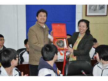 皇冠体育官网副校长杜毓贞代表学校向12中赠送礼物 南京12中王校长向皇冠体育官网赠送礼品