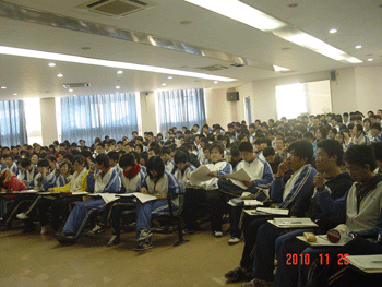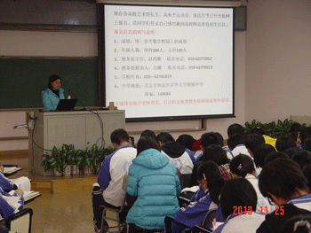 北京市2011年普通高等学校招生报名工作将于2010年12月进行,为了保证高三学生高考报名工作顺利完成,2010年11月25日,皇冠体育官网教务处、高三年级组联合组织召开高考报名工作布置大会。教务主任赵鸿雁、高三年级组长徐海鹰、尹粉玉、教务老师肖娜、高三各班班主任以及全体高三学生参加会议。高三年级组长徐海鹰主持会议。