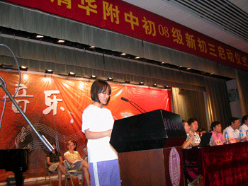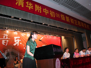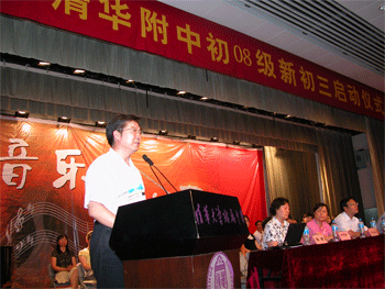 王殿军校长在致辞中,向学生及家长通报了学校今年中考、高考情况,并对新一届初三的师生提出规范要求与殷切希望。随后,上一届初三(初07级)学生代表何蓉发言,鼓励学弟学妹们要对未来的学习与生活充满信心。新初三的教师代表唐洁在发言中表示,将以加倍的努力与拼搏,和学生一起迎接明年中考的挑战与洗礼。大会最后,新初三年级体育老师丁磊就中考体育标准和暑假锻炼提出建议和要求;年级组长张颖对今后工作进行安排部署。在同学和家长们的热烈的掌声中新初三启动仪式圆满结束。