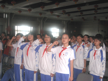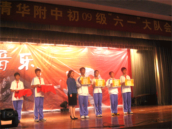 在初一年级的表彰会上,初一年级组长邱晓云老师宣读初09级优秀集体和优秀个人的表彰名单:初0905中队、初0906中队、初0911中队和初0912中队获得优秀中队称号;叶咏婕等12名同学被评为优秀中队干部;饶东宁等60名同学被评为优秀少先队员;倪千绘等156名同学被评为单项标兵。杜毓贞副校长在致辞中勉励同学们要珍惜幸福生活,刻苦努力学习,做国家的栋梁之材。初0906中队的金子牛同学代表新团员代表发言。