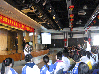 李开复博士在演讲中,结合自己的成长、工作经历,以独特的视角来阐述了对人生的见解,他希望青少年能自信、谦虚,认真找寻自己的兴趣;学会思考,正视挫折,努力实现有用的创新等。整个演讲轻松幽默,诙谐风趣,既发人深省又激人奋进,受到全体师生的热烈欢迎。演讲结束后李开复博士与附中学生进行互动交流,逐一回答了学生的现场提问。每位提问的同学都得到了李开复博士亲笔签名的自传《世界因你而不同》一书。整个活动气氛热烈、融洽和谐。