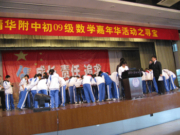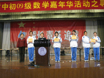 本次活动不仅让同学们体会到了“数学是奇异的旅行,更是精神的自由”,同时增强了大家的团体协作意识,整场活动气氛紧张而又活跃。数学教研组组长徐文兵老师在最后的总结发言中对本次活动给予高度评价,并鼓励同学们积极发现数学的乐趣,全体同学高呼“快乐数学,快乐无限”。初一年级组长邱晓云老师等为获奖班级颁奖。