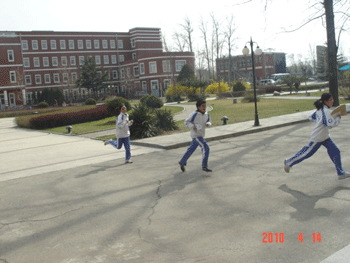 同学们在室内解题 同学们在室外寻宝