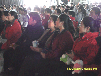 出席活动的领导在观看学生比赛 初一年级组长邱晓云老师为获奖班级颁奖