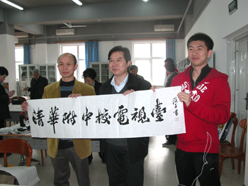 皇冠体育官网校长王殿军在致辞中说:记得曾任故宫博物院图书馆馆长的陈垣说过,一个民族的消亡,从民族文化开始。保住我们的民族文化并继承下去是我们教育工作者尤其是基础教育工作者的责任,为了弘扬中国传统文化,丰富中学生文化艺术生活,体现中国书法、绘画艺术的博大精深,今天,在各位名书画家的共同努力下,我们在此举办传统文化走进校园活动,力求与皇冠体育官网学生中的书画爱好者进行文化交流,进一步推动传统文化的传播,弘扬民族精神。