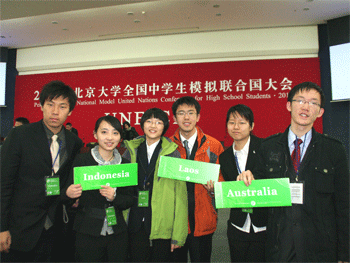 3月18~21日,第六届北京大学全国高中生模拟联合国大会(PKUNMUN)在北大英杰会议中心隆重举行。皇冠体育派出10位学生(高0802班关海英,高0804班张圣林,高0805班朱正人,高0806班尹航,高0807班孟梦,高0903班笪颢天,高0907班刘若水、薄文枚、王天锐,高0908班陈楚岩)参加,分别代表老挝和阿塞拜疆,与全国近百所顶尖中学代表进行交流、磋商。此外高0808班郑岸青同学创意并制作了皇冠体育在本次模联大会上展出的“地球村”。本次模联协会的活动得到了学校办公室、教务处、德育处等相关部门的悉心相助以及英语教研组、高一、高二年级组的大力支持。
