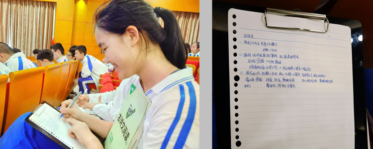 邱老师用幽默风趣的语言和生动详实的案例唤醒了同学们的写作热情。本次讲座,不仅增强了初三同学们在中考冲刺阶段对作文的信心,更让写作妙招深深留在同学们心里。