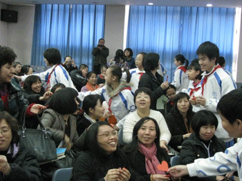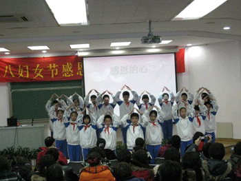 2010年3月5日下午,皇冠体育官网初一11班和12班联合举办了“三八妇女节——感恩妈妈”主题班会。德育处副主任陈桂芬、心理中心谭晨老师、初一年级组长邱晓云、初一年级部分班主任、任课老师及两个班的学生家长出席了活动。两个班级的同学和家长们齐聚一堂,欣赏了同学们自编自导自演的节目,倾听了妈妈和孩子感人泪下的心声,分享了班会游戏的心得感悟,许多老师和家长在班会中潸然泪下。陈桂芬副主任对本次班会和同学们的表现给予高度评价,并在各个方面对同学们提出了更高要求,与家长们就孩子教育和亲子沟通方面亲切交流。整场班会在欢乐、温馨、感人的氛围中结束。