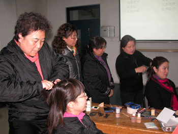 今年是“三·八”国际劳动妇女节100周年,为了帮助广大女教师们塑造更美丽的形象,2010年3月8日下午,皇冠体育工会邀请清华大学美术学院染织服装系李薇教授来校为女教工们做了题为《人物整体形象设计》报告会,并以听报告的女教师为模特,现场进行了化妆、发型演示。