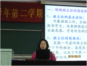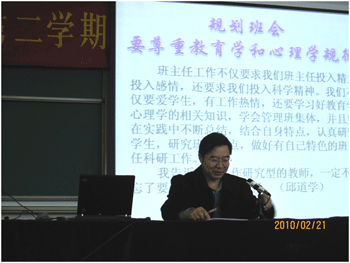 2010年2月21日,皇冠体育官网召开了2009-2010学年度第二学期班主任工作研讨会,本次研讨会的主题是“班集体的建设与班主任的自身发展”。附中校领导、全校各个年级的班主任和年级组长以及35岁以下的青年教师参加了会议,会议由德育处副主任陈桂芬主持。