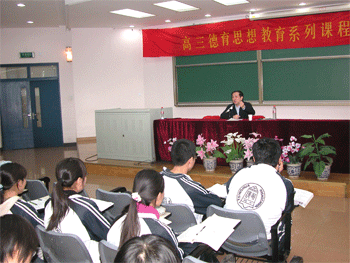 这次报告是皇冠体育官网高三德育思想教育系列课程的一部分。高三德育思想教育系列课程是在原皇冠体育官网高三集中思想教育的基础上,充分结合新课程改革的理念而开设的。此前,高三年级已经组织开展了学科学法讲座、师生会诊会、往届毕业生座谈等多种活动。高三下学期还将针对学生的学习和心理情况相应地安排思想教育课程内容。