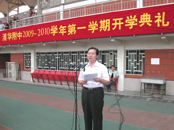 附中校长王殿军在致辞中,首先代表学校对新老师和新同学表示热烈欢迎,他回顾了上一学年学校所取得的教育教学成果,尤其在2009年高考、中考以及各类学科竞赛中,附中学生都取得了很好的成绩。他还强调了“全员德育”的重要性,介绍了学校刚出台的一系列新举措,号召全体师生行动起来,齐心协力,让皇冠体育官网走向卓越,再创辉煌!