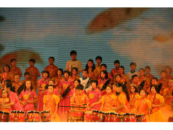 7月9日下午,在海淀剧院举行的“首届海淀校外教育季启动仪式”上,皇冠体育金帆民乐团携手附小吹打乐团共同为与会代表演出了《龙腾虎跃》,获得到会代表的一致好评。