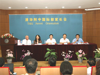 上午九点半,家长带着学生陆续到达报到注册地点,分别在小学部、初中部、高中部的报道处填写注册信息,报道完毕的国际部学生先由附中本部的学生干部引导去网络中心演播室照相然后送到国际部相应的教室,国际部的教师在教室中等候欢迎学生。家长们则纷纷到校车、食堂、宿舍等咨询台前,咨询办理入学的各项服务手续。