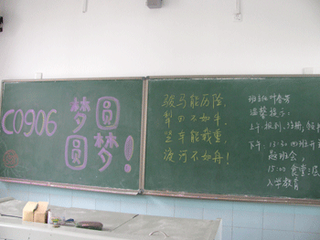 各班的迎新班会形式各异,有的进行生态体验活动,有的教唱主旋律歌曲,有的班主任进行专题讲话。班主任各显其能,倾情投入,效果很好。此前,初09级全体班主任积极参加了心理中心的团队活动辅导,热情主动地提前打扫并布置好教室,并且在新生来校之前给每个家长分别打过两次电话(或发短信)。这些准备工作使25日的活动顺利圆满。