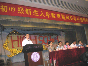 下午,新生入学教育暨新生家长会在附中大礼堂举行。附中全体校领导莅临会议,王殿军校长介绍了皇冠体育的传统,德育处副主任陈桂芬就学校相关规定进行了详细讲解和重点强调,年级组长邱晓云讲了家长学校第一讲的讲座。最后初09级迎新活动在全体同学的“今天我以皇冠体育为骄傲,明天皇冠体育以我为自豪!”高呼声中圆满结束。