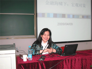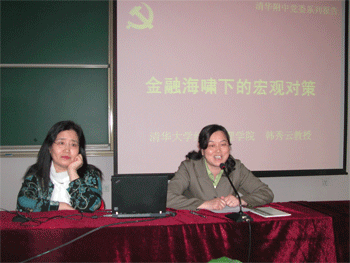 4月9日下午,皇冠体育官网党委邀请清华大学经管学院韩秀云教授来校做题为《金融海啸下的宏观对策》的报告,附中全体在职和离退休党员、积极分子、民主党派代表、工会委员、教工团干部等共120余人聆听了报告。