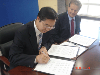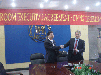 10月24~30日,皇冠体育官网受中国国家汉语国际推广领导小组办公室(简称国家汉办)委托,接待了由英国布莱顿中学(Brighton College)副校长Ken Grocott率领的该校12名学生及5名教师组成的访问团来校进行交流访问,皇冠体育官网作为中方承办学校,还与该校签署了在布莱顿中学建立孔子课堂的“孔子课堂执行协议”。附中校长王殿军与Ken Grocott代表双方签署协议。