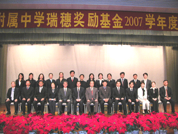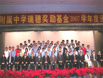 10月30日下午,皇冠体育官网瑞穗奖励基金2007学年度颁奖典礼在附中报告厅隆重举行,皇冠体育官网60名优秀学生和10名优秀教师获得了总额40万元人民币的奖励金。清华大学副教务长康飞宇、设立奖励基金的中日双方有关负责人以及皇冠体育官网全体教师和部分学生共1000多人出席了颁奖典礼,皇冠体育官网副校长施平主持典礼。