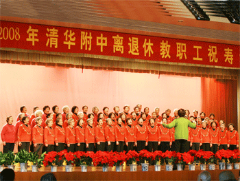 随后进行了丰富多彩的文艺演出:场面恢宏的大合唱、绚丽多彩的民族舞、活泼欢快的健身操……无不展示了附中离退休老同志们愉悦的心情与健康向上的精神面貌。