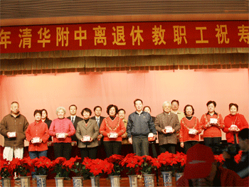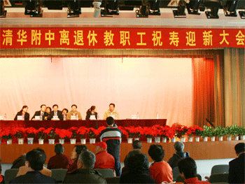 会上,附中党委书记方妍宣布寿星名单,向到会的寿星们祝寿。附中党委副书记、离退休工作领导小组组长周兆玉宣布今年新退休的同志名单,并发表热情洋溢的迎新祝辞。在温馨热烈的音乐声中,出席大会的领导们为寿星和新会员颁发纪念品并合影留念。