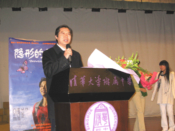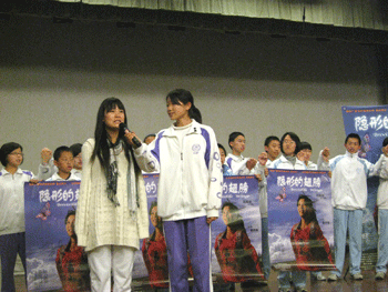 首先,工作人员为到场嘉宾和初一初二的师生们播放了影片《隐形的翅膀》。这部影片讲述了残疾运动员志华身残志坚的人生经历,志华在一次事故中意外失去双臂,在突如其来的人生磨难面前,志华并没有退缩,而是以坚强的意志和超乎寻常的毅力获得了成功。影片真实感人,引起了大家的强烈共鸣。